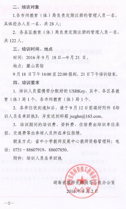湘教资办字〔2016〕4号 湖南省中小学教师资格定期注册制度试点工作培训通知